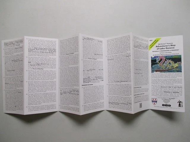 This Dungeons & Dragons® style map and key takes adventurers of all levels on an adventure through space and time to discover the legacy of Gary Gygax’s life in the City of Lake Geneva. Designed, meticulously researched, and produced by D&D® historian, Paul Stormberg; this map and its key present a real adventure through the life of Gary Gygax, the history of the creation of Dungeons & Dragons®, and the the founding of TSR Hobbies, Inc. in Lake Geneva to publish it.
