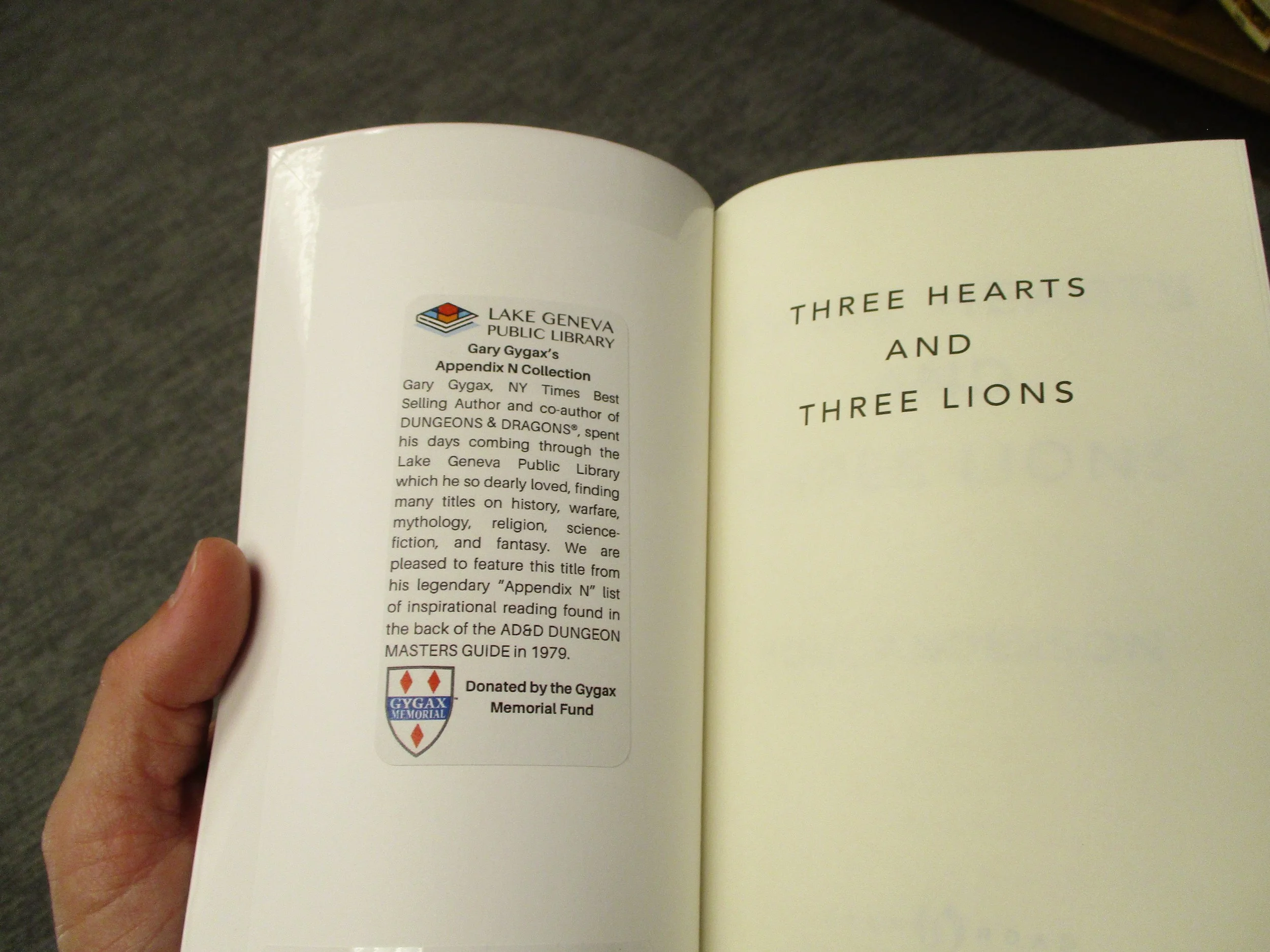On August 10th, 2023, the Gygax Memorial Fund dedicated the Appendix N Alcove within the Lake Geneva Public Library that holds a collection of over 100 novels and stories from the Gary Gygax Appendix N list of inspirational reading.
